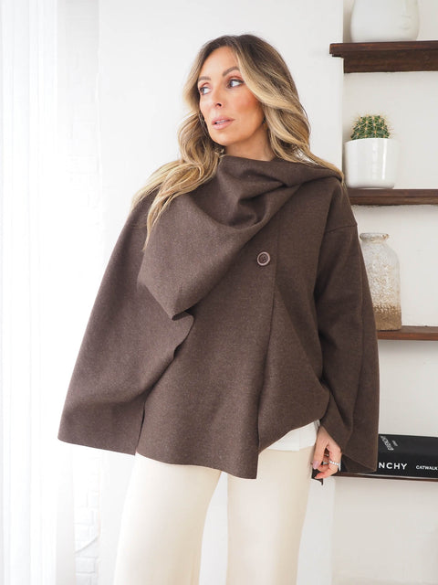 A capa estilo casaco feminina é a peça perfeita para quem procura elegância, conforto e um toque sofisticado nos dias mais frescos. Com gola redonda, fecho de botão e cachecol incorporado, esta capa alia design funcional a um estilo moderno e intemporal. O cachecol integrado acrescenta praticidade e proteção extra contra o frio, tornando esta capa ideal para o outono e inverno. A gola redonda clássica confere um acabamento elegante, enquanto o fecho de botão garante facilidade ao vestir e um ajuste confortável. Versátil e cheia de estilo, esta capa feminina estilo casaco adapta-se facilmente a looks casuais, urbanos ou mais sofisticados, podendo ser usada sobre camisolas, malhas ou vestidos. Uma peça prática e diferenciadora, indispensável no guarda-roupa feminino.