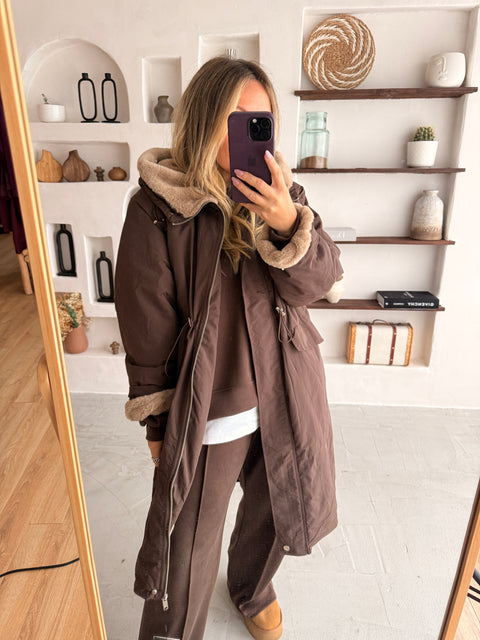 Enfrenta o frio com elegância com o kispo com forro de pêlo macio e quente — a escolha perfeita para os dias frios de inverno. Este kispo combina estilo, conforto e funcionalidade. O forro interior em pêlo suave garante um toque aconchegante e mantém o corpo quente mesmo nas temperaturas mais baixas. O capuz ajustável oferece proteção extra contra o vento e a chuva, enquanto o fecho frontal com zipper e botões assegura um isolamento perfeito. Os bolsos frontais funcionais completam o design prático e moderno, ideais para manter as mãos quentes ou guardar pequenos essenciais. Com corte ajustável e acabamento premium, este kispo é o equilíbrio ideal entre moda e conforto — perfeito para o dia a dia, passeios ou viagens.