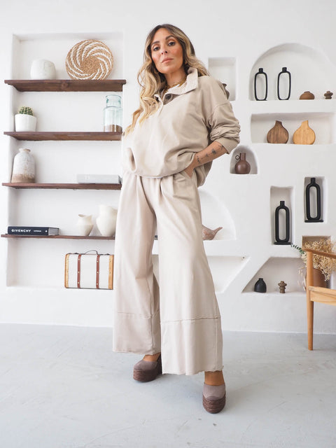 O conjunto de felpa é a escolha perfeita para quem procura conforto, estilo e versatilidade no dia a dia. Disponível em várias cores — amarelo, cru, bege e castanho — este conjunto permite criar looks descontraídos e modernos, mantendo o conforto em qualquer ocasião. A sweatshirt apresenta gola alta e fecho de botões de mola, conferindo praticidade e um toque sofisticado ao look casual. Já as calças de felpa possuem cintura alta com elástico, proporcionando ajuste confortável e liberdade de movimento, enquanto o tecido macio garante aconchego durante todo o dia. Perfeito para combinar com ténis, botas ou sandálias, este conjunto é ideal para looks casuais, lounge wear ou street style, sendo também uma opção prática para homewear com estilo.