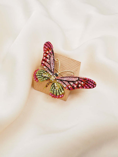 Alfinete de peito em forma de borboleta. Medida da borboleta: Comprimento- 8cm, e Altura- 4cm. Comprimento do alfinete: 5cm.