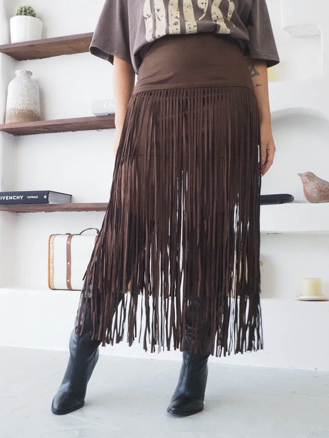 Dá um toque de estilo e movimento aos teus looks com esta saia curta efeito camurça, perfeita para quem gosta de unir conforto e tendência. O pormenor de franjas acrescenta dinamismo e um toque boho-chic, acompanhando cada passo com fluidez e charme. Com fecho zipper invisível na parte de trás, oferece um ajuste perfeito e discreto, mantendo a silhueta elegante. O tecido suave imita a textura da camurça verdadeira, proporcionando um visual moderno e aconchegante. Combina na perfeição com camisolas oversized, blusas leves ou t-shirts básicas, adaptando-se a diferentes estilos — do casual descontraído ao look de noite arrojado. Uma saia feminina curta que é puro destaque no guarda-roupa.