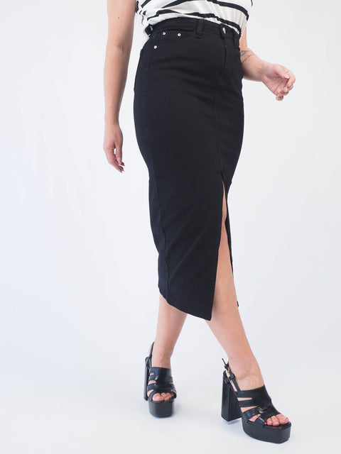 A nossa Saia de Ganga Midi é uma peça essencial para qualquer vestuário, combinando estilo clássico e funcionalidade. Feita em ganga, esta saia apresenta bolsos à frente e atrás, oferecendo praticidade e um toque casual ao design. O fecho zipper e botão na parte da frente garantem um ajuste seguro e confortável. O pormenor de abertura em baixo à frente adiciona um detalhe moderno e elegante, permitindo maior liberdade de movimento. Versátil e intemporal, esta peça de vestuário é perfeita para criar looks incríveis, seja para o dia a dia ou para ocasiões especiais. Fica confiante e na moda com a nossa Saia de Ganga Midi feminina.
