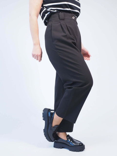 As calças de tecido estilo paper bag são a combinação perfeita entre sofisticação e conforto, ideais para mulheres que valorizam um visual moderno, elegante e ao mesmo tempo descontraído. O seu corte de cintura subida com cinto ou franzido cria uma silhueta feminina e favorecedora, realçando a cintura e alongando a figura. Confeccionadas em tecido leve e fluido, estas calças garantem conforto durante todo o dia, seja no trabalho, num passeio ou num evento especial. O design contemporâneo é complementado por bolsos laterais práticos, perfeitos para guardar pequenos objetos essenciais, mantendo as mãos livres e o look funcional. O fecho com zipper e botão proporciona um ajuste seguro e personalizado, assegurando que a peça se adapta perfeitamente ao corpo. Versáteis e cheias de estilo, as calças paper bag podem ser combinadas com blusas elegantes, camisas estruturadas ou até t-shirts básicas para um toque mais casual. Com estas calças, estarás pronta para arrasar em qualquer ocasião — um verdadeiro must-have no guarda-roupa feminino, que alia estilo, conforto e versatilidade num só modelo.