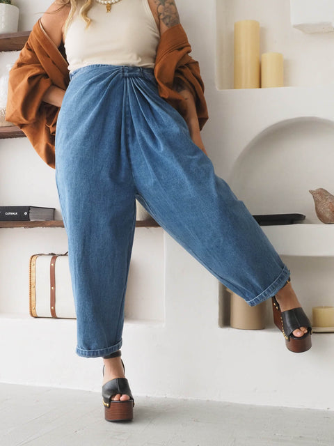 These baggy balloon pants combine comfort and style with a loose, casual fit, ideal for those looking for pieces with personality. The draped detail at the front adds a sophisticated and modern touch, while the elastic waistband ensures a perfect fit and freedom of movement. Front and back pockets offer functionality without compromising the look. A versatile piece that can be worn with casual looks or with a more urban and edgy touch. Product details: Baggy balloon cut with wide legs; Front drape adds texture and dimension; Elastic waistband for added comfort; Functional front and back pockets; Lightweight, flowy fabric with a good drape; Ideal for casual, urban, and streetwear looks.