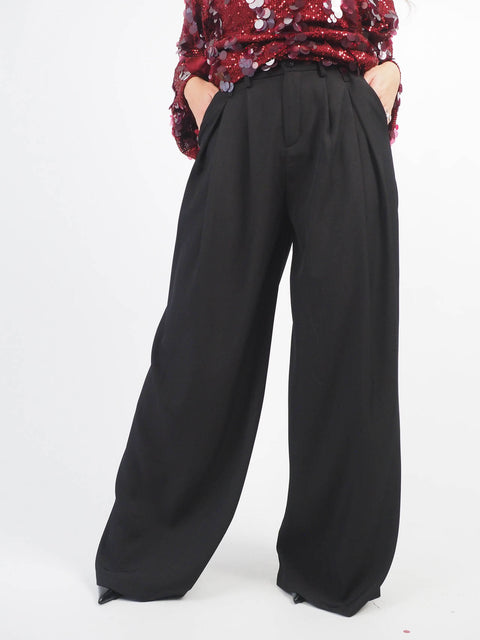 Timeless elegance and modern comfort define these high-waisted pants, ideal for those seeking a sophisticated look without sacrificing functionality. Crafted with attention to detail, these pants feature front pleats that add structure and movement to the silhouette, creating a fluid and elegant fit. The design includes discreet, practical, and functional front pockets, perfect for everyday wear. The high waist enhances the silhouette and visually elongates the legs, while the wide-leg cut ensures comfort and a contemporary touch. The front zipper and button closure ensures a secure and discreet fit. Versatile and sophisticated, these pants are ideal for both work looks and more casual ensembles with flats or sandals. A wardrobe essential.