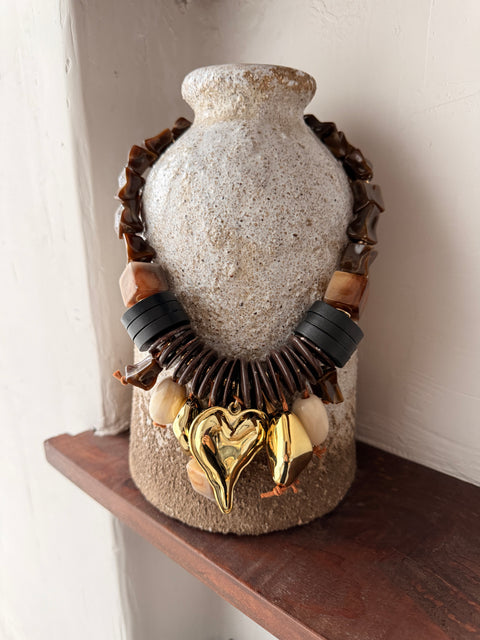 Colar Grosso com Pendentes e Madeira