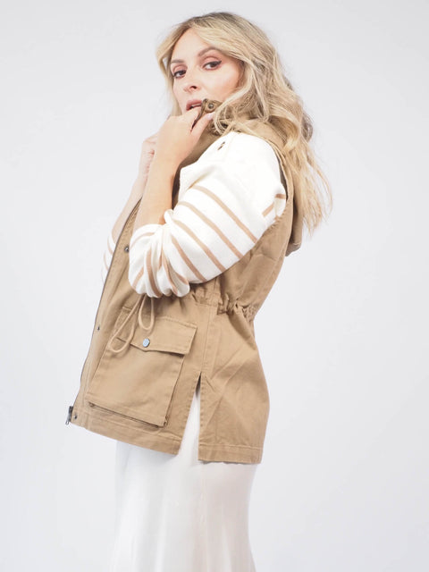 With a snap button and zipper closure, we guarantee that you will have an easy time putting on and taking off the vest. In addition, the pockets on the front provide practicality for storing small essential items. A unique feature of this vest is the adjustable cord at the waist, allowing you to adapt it according to your preference and style. You can adjust it to highlight your silhouette or leave it looser for a more relaxed look.