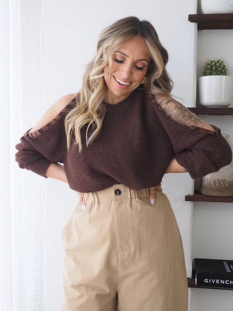 Ajoutez une touche féminine et moderne à votre garde-robe avec ce pull en maille à épaules dénudées. Son design élégant souligne subtilement la silhouette, créant un look moderne et charmant. Confectionné en maille douce et confortable, il est parfait en toutes occasions, des moments décontractés aux occasions plus spéciales. Son col ras du cou classique équilibre les détails des épaules, le rendant polyvalent et facile à assortir. Ce pull est le choix idéal pour celles qui recherchent une pièce alliant confort, mode et féminité, s'adaptant aussi bien aux tenues de jour que de soirée.
