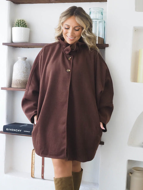 O sobretudo de fazenda com bolsos é a peça essencial para quem procura elegância, sofisticação e conforto durante os meses mais frios. Feito com tecido de fazenda, proporciona um toque suave, durabilidade e aquecimento, mantendo um visual clássico e moderno ao mesmo tempo. O fecho de botão frontal garante praticidade e estilo, permitindo diferentes formas de usar o sobretudo, seja totalmente fechado para proteção máxima ou aberto para um look mais casual. A gola alta oferece proteção contra o frio, enquanto adiciona um toque elegante e estruturado ao visual. Com mangas compridas e corte pensado para o conforto, este sobretudo combina facilmente com diversas peças do guarda-roupa, desde camisolas de malha, blusas ou vestidos, até calças de ganga ou calças de tecido, tornando-o ideal para o dia a dia ou para ocasiões mais formais. Os bolsos laterais funcionais adicionam praticidade sem comprometer o design sofisticado, permitindo guardar pequenos objetos com conforto. Disponível em cores clássicas e neutras, o sobretudo de fazenda feminino é uma escolha versátil e atemporal, perfeita para criar looks urbanos, elegantes e aconchegantes.