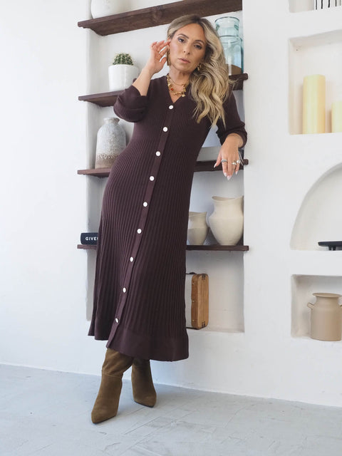 Descobre o vestido de malha perfeito para o teu guarda-roupa: um modelo elegante com pormenor de botões de feitio, manga comprida e decote em bico. Este vestido de malha destaca-se pelo seu design moderno e confortável, ideal para os dias mais frescos. Os botões decorativos acrescentam um toque de charme e originalidade, enquanto a manga comprida garante aconchego e estilo. O decote em bico valoriza o colo e alonga a silhueta, tornando este vestido versátil para várias ocasiões, desde o trabalho até um passeio de fim de semana. Se procuras um vestido de malha com botões, manga comprida e decote em bico, esta é a escolha certa para um look feminino, atual e cheio de personalidade.