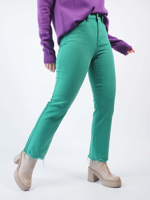 Descobre o par perfeito de calças de ganga, com uma cintura alta, e bainha desfiada. Fecho de botão e fecho de correr metálico, com bolsos frontais.