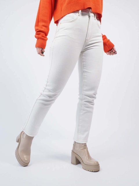 Este par de calças de ganga de cintura alta, bolsos à frente e atrás, e fecho de correr metálico e botão de fecho. Um ajuste relaxado que te fará sentir confiante.