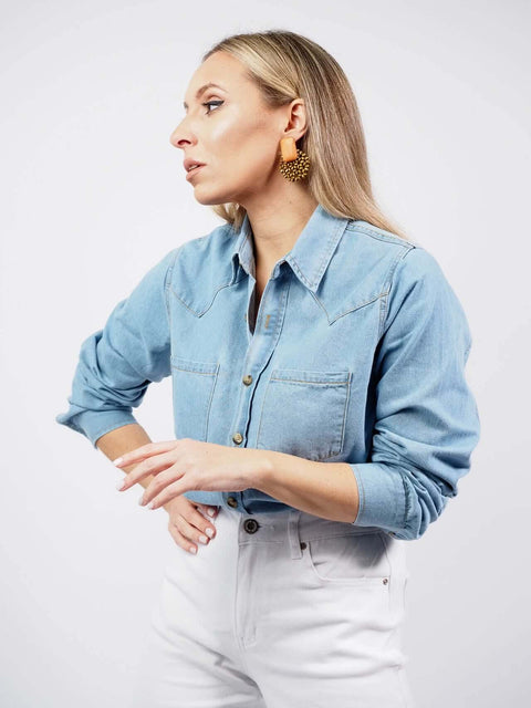 A camisa de ganga perfeita, terminada com um colarinho em bico, bolsos frontais e botões de fecho. As mangas compridas acabadas com um punho de botão proporcionam um aspeto fácil e de puro conforto. MEDIDAS:Altura - 62cm;Cava - Tamanho S: 50cm; Tamanho M: 52cm; Tamanho L: 54cm; COMPOSIÇÃO: 100% Algodão.