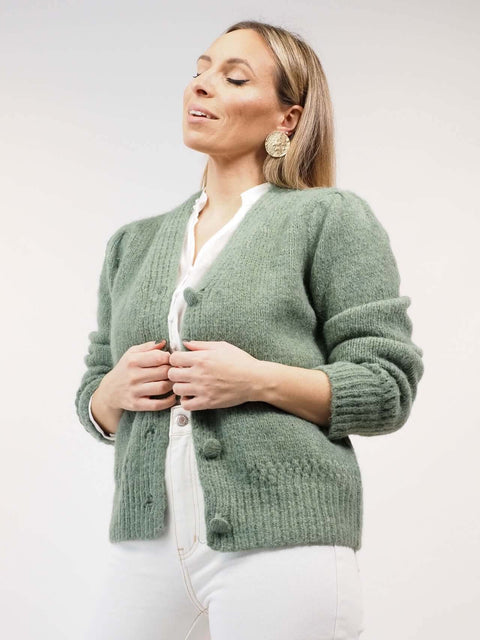 Mantém-te aconchegada com o nosso casaco de malha. Um decote em bico, um fecho de botões no mesmo tecido e cor, e os punhos com nervuras acrescentam um toque casual. E se gostas tanto de estilo como de conforto, não percas este casaco versátil. MEDIDAS:Altura - 61cm;Cava - 58cm; COMPOSIÇÃO: 50% Acrílico, 50% Poliamida.