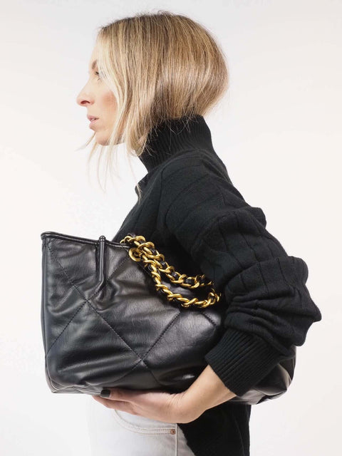 Uma bolsa prática, mas elegante. A mala Ecopele tem uma alça para o ombro e uma alça de mão em corrente. Os bolsos interiores ajudam a manter as tuas coisas organizadas, e o fecho éclair mantém tudo seguro.